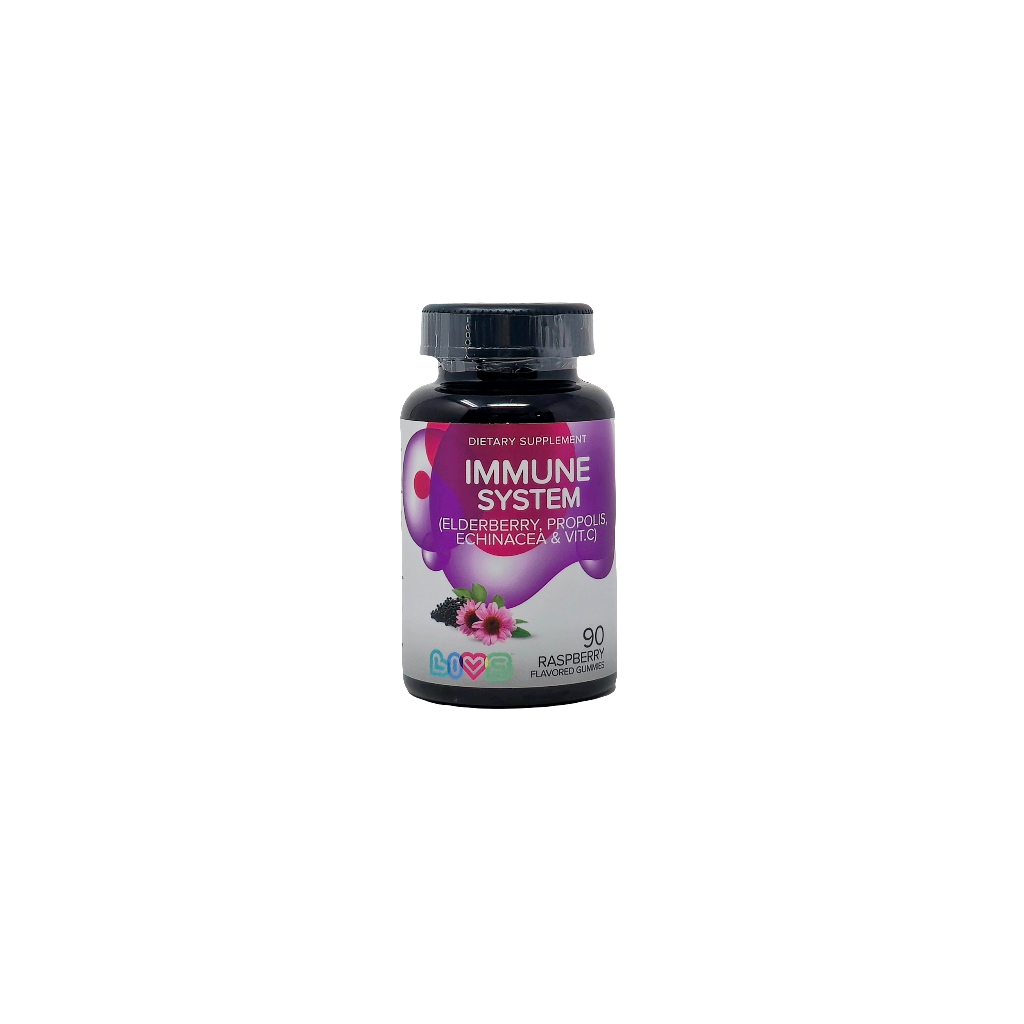 LIVS Immune Sydtem Dietary Supplement Rasperry 90 Gummies 16 oz