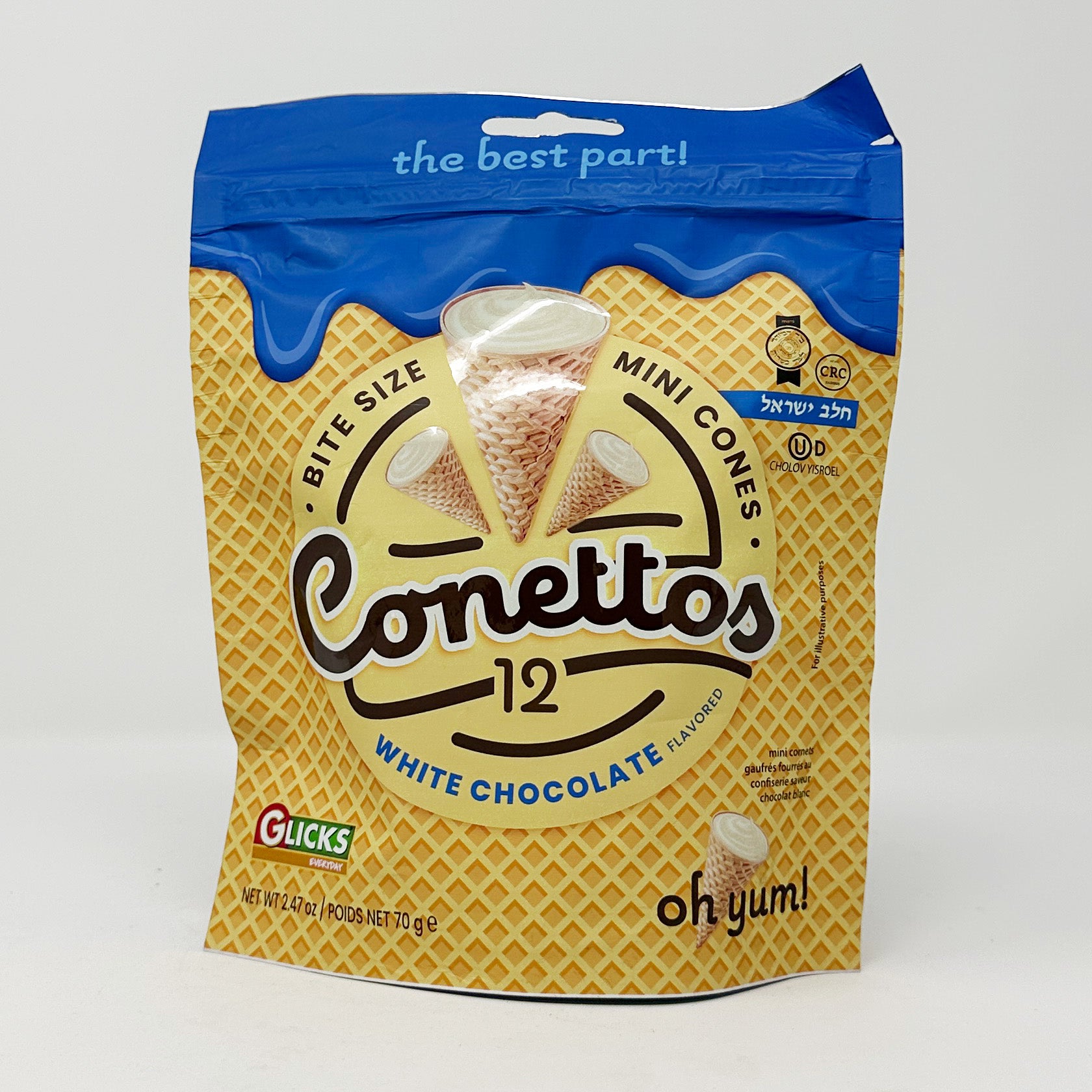• Delicious White Chocolate: Indulge in the rich and creamy taste of Glicks Conettos White Chocolate.
